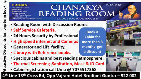 Located at the centre of Guntur, we offer a reading room with comfortable cabins and locker facilities.